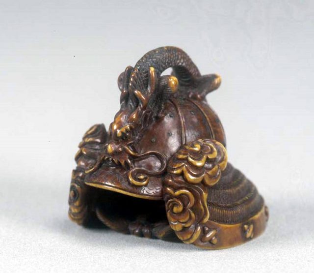 龍前立兜牙彫根付