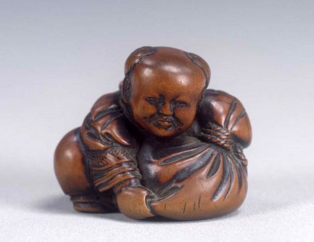 袋を抱えた唐子。福々しい表情に心なごまされる。
