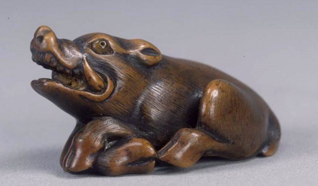 干支の一つである猪の根付。