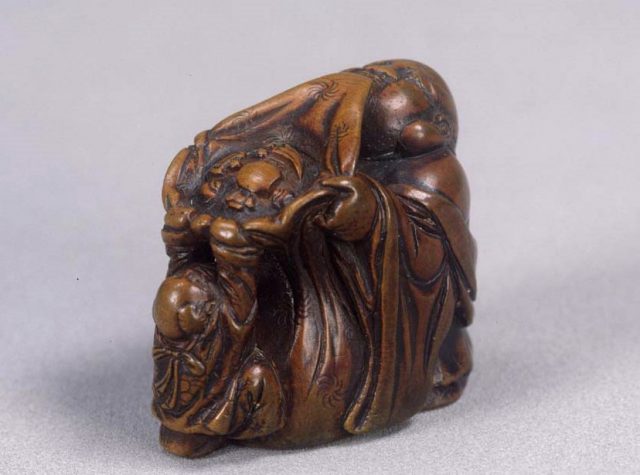 布袋唐子木彫根付