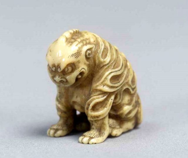伝説の聖獣、白澤を象った象牙彫刻である。