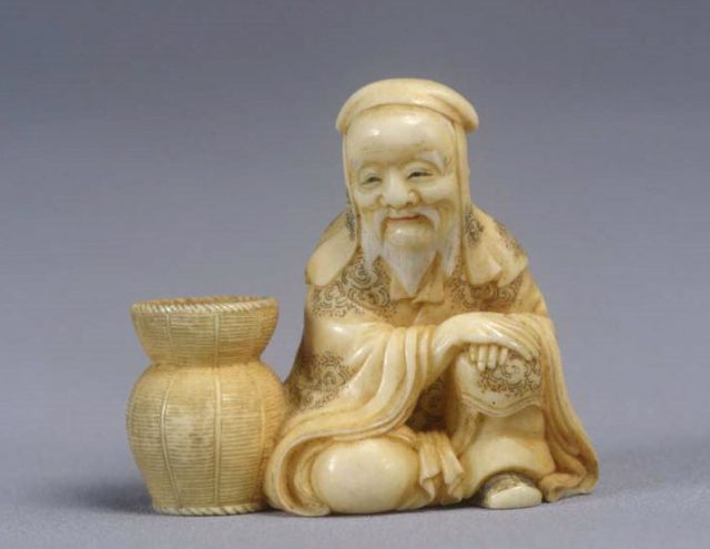 太公望牙彫根付 ColBase 2018.12.262020.07.11 江戸時代・19世紀 高3.0 嵌装銘「法実」 東京国立博物館 郷誠之助氏寄贈 周の軍師、太公望の置物。 「法實」は江戸後期、幕末期の有名根付師。 詳しくはこちら。 鉄漿付牙彫根付江戸時代・19世紀高3.0線刻銘「法実」東京国立博物館郷誠之助氏寄贈鉄漿(おはぐろ)を付ける人の姿を象った写実的な置物。「法實」は江戸後期~幕末~明治初期の名工。幕府の御家人で本名は山田伊左衛門(明治五年歿)。明鶏齋と号した。形彫は写実的で... 出典:国立博物館所蔵品統合検索システム