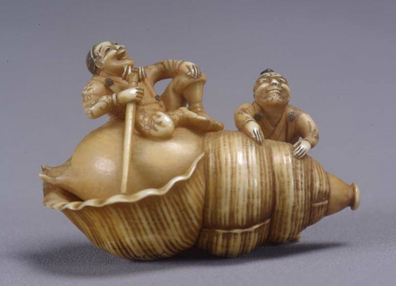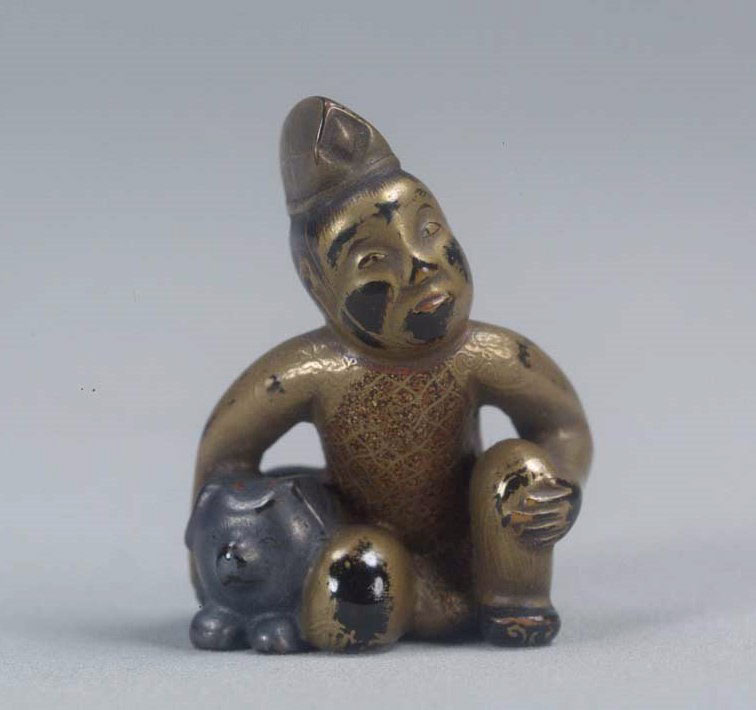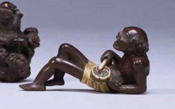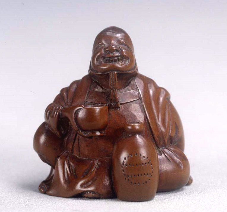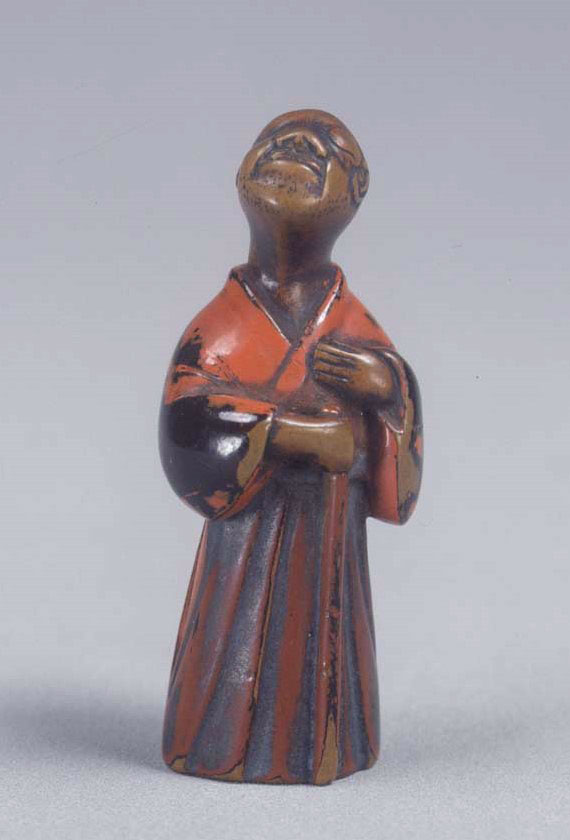 江戸時代・18世紀高3.0線刻銘「三輪」東京国立博物館郷誠之助氏寄贈同じ「三輪」銘の「猿廻木彫根付」の傀儡師バージョン。かなり使いこまれた感がある。出典:国立博物館所蔵品統合検索システム
