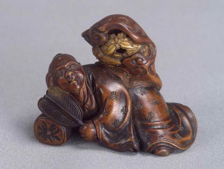 江戸時代・19世紀高3.0嵌装銘「法実」東京国立博物館郷誠之助氏寄贈周の軍師、太公望の置物。「法實」は江戸後期、幕末期の有名根付師。詳しくはこちら。出典:国立博物館所蔵品統合検索システム