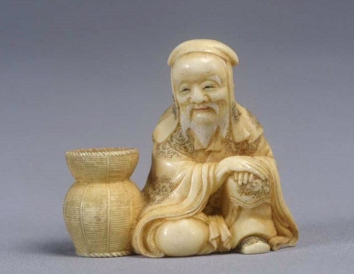 江戸時代・19世紀高3.3線刻銘「一鶏斎」東京国立博物館郷誠之助氏寄贈歴史に名高い周の軍師、太公望の置物。「一鶏齋」は田中宝玉。明鶏齋法實の弟子。師の法實の太公望とよく似た意匠である。出典:国立博物館所蔵品統合検索システム