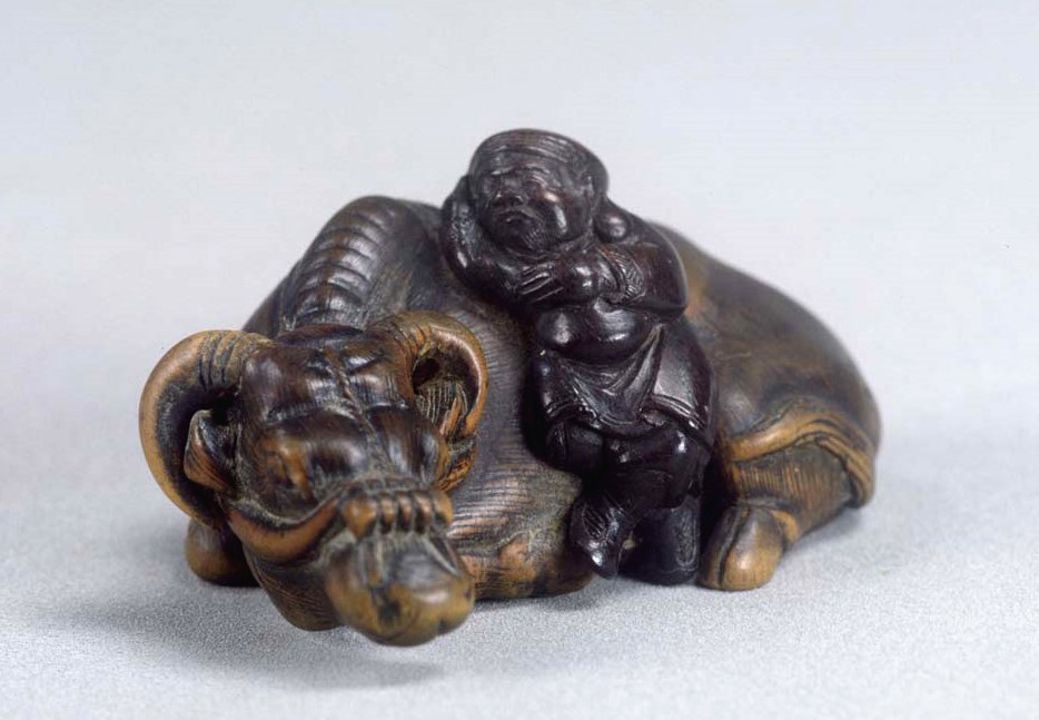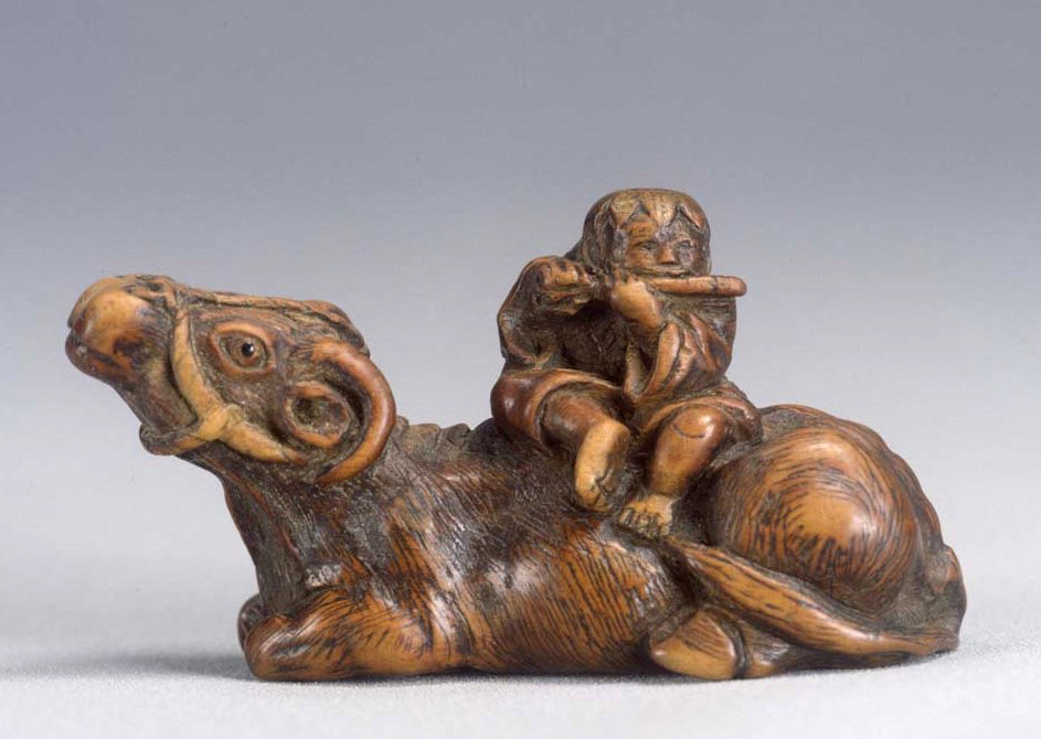 ColBase 牧童木彫根付 江戸時代・19世紀高3.1線刻銘「友近」東京国立博物館牛の背に乗り、横笛を吹く牧童。唐や宋から伝わった神仙思想の世界に材をとった意匠。仙人の根付でも顕著だが、神仙思想から材を得た人物の造形は、現代の感覚からすると非常にグロテスクだが、江戸の... 2018.12.21 ColBase