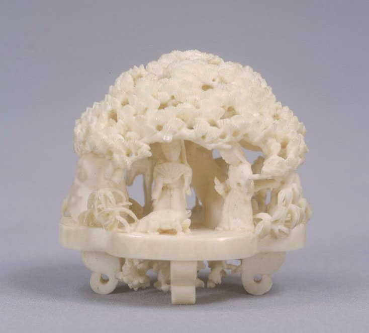 ColBase 島台高砂牙彫根付 江戸時代・19世紀高3.9線刻銘「懐玉斎」東京国立博物館郷誠之助氏寄贈松の下に尉と姥、亀がいる構図。高さ4センチ足らずの中に材に彫り込まれた細密彫刻。「懐玉斎」は正次が五十歳以降に用いた銘。文化十年~明治二十五年(1813-1892年)。二... 2018.12.25 ColBase